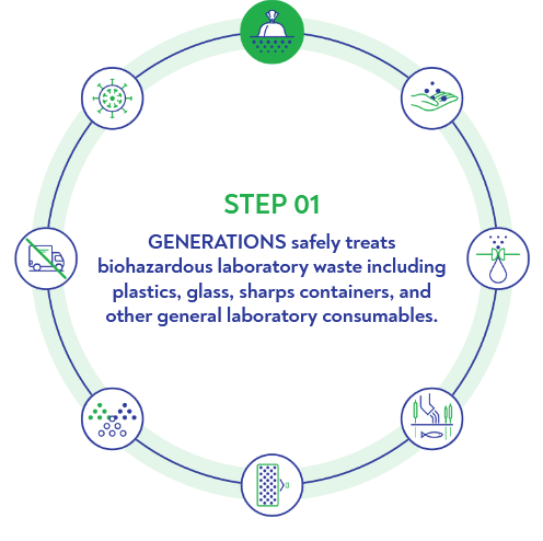 GENERATIONS is a pioneer in environmentally friendly, clean technology solution, engineered for laboratories in the life science sector. Our validated technology is installed on-site, enabling the recycling of up to 100% of plastics at source in a safe, effective and more environmentally sustainable way. GENERATIONS is non-thermal and utilizes a proprietary biodegradable chemical. The system’s unique capabilities convert biohazardous waste into a recyclable polymer flake that is entirely safe to transport for recycling.