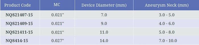 The Neqstent™ is indicated for use in conjunction with conventional embolic coils for endovascular embolization of intracranial aneurysms.