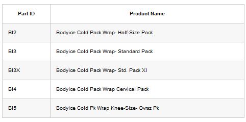 Provide evenly-compressed cold treatments when used with BodyIce Cold Packs (sold separately). Made of segmented black elastic. 6 sizes.