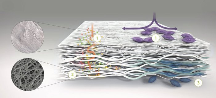 - Smooth layer - a parallel arrangement of densely packed collagen bundles with abundant pores permit the passage of fluids and nutrient molecules while preventing the invasion of external tissue into the site of repair.