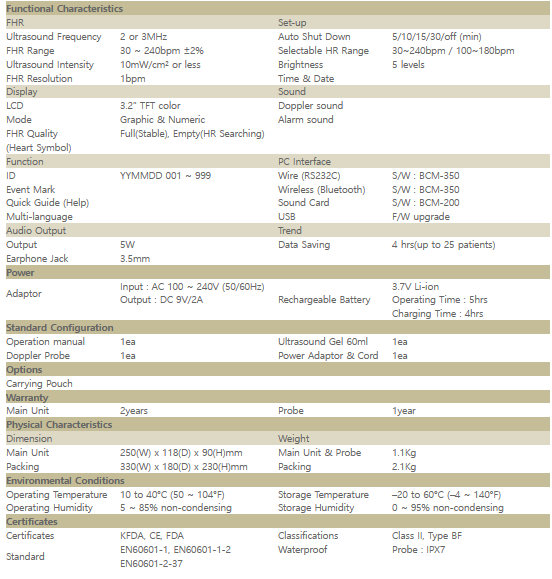 Bistos - Model BT-250 -Color LCD Desktop Style Fetal Doppler