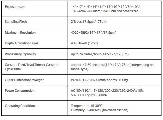 Two resolutions are available. In addition to the standard resolution, Nano CR is capable of a high resolution of 87.5 µm, which provides diagnostic quality images where recognition of subtle pathological changes is essential, such as special extremity and pediatric applications.
