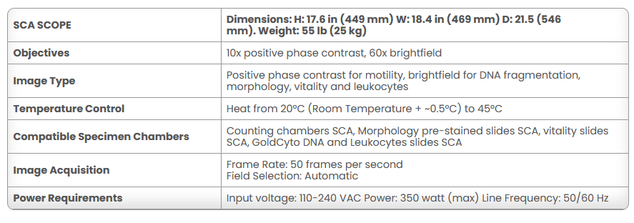 Moreover, the SCA SCOPE is easy to use and capable of performing a spermiocytogram in less than 4 minutes.