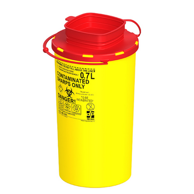 The MINI-SERIES containers are puncture resistant and used for carrying and disposing needles, syringes and other sharp and cutting objects. They are designed in such way to provide an easy and safe work practise. Range consists of round-shaped containers in 3 different sizes: 0.7 lt, They are equipped with an insulin pen disconnection device, needles and luer locks removal system. Security flap prevents waste from outflow, but can also be broken down if nedeed to dispose of larger objects. Temporary and permanent sealing option ensures safety during complete usage.