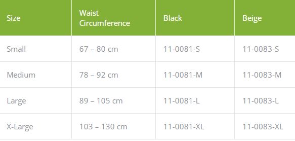 Contoured elastic support with anatomical fit. Extra side pulls at the back emphasise the lordosis and provide optimal support for the back. Four semi-rigid aluminium stays in the back part with lordosis contour. Two spring stays at the front for extra support. Hook and loop closure at the front with an additional finger loop for easy application. Front height 18 cm / 26 cm at the back.