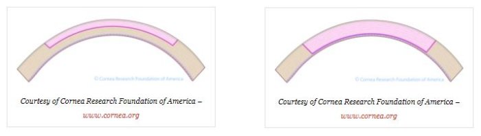 In recent years, corneal transplant surgery has advanced so that in many cases, only that section of the cornea that is diseased or injured is replaced. These procedures are referred to as “lamellar keraroplasty”.
