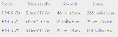 - Packaging: FM-3170 48 rolls/box 288 rolls/case FM-3171 32 rolls/box 192 rolls/case 32 rolls/box 192 rolls/case FM-3172 24 rolls/box 144 rolls/case