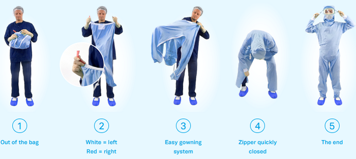 Thanks to the BeMicron folding system and donning procedure, the operator’s movements follow each other automatically without need to touch the outside of the coverall and without errors in procedure.