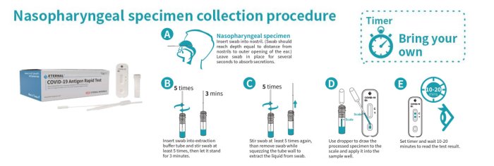 The Eternal COVID-19 Rapid Antigen Test is a lateral flow immunoassay intended for the qualitative detection of SARS-CoV-2 antigens in the nasopharyngeal and nasal swab samples. The Eternal COVID-19 Rapid Antigen Test has a sensitivity and specificity comparable to PCR tests (98%~99%; 194 positive & negative samples.), and higher detection sensitivity compared to industry-leading brands.