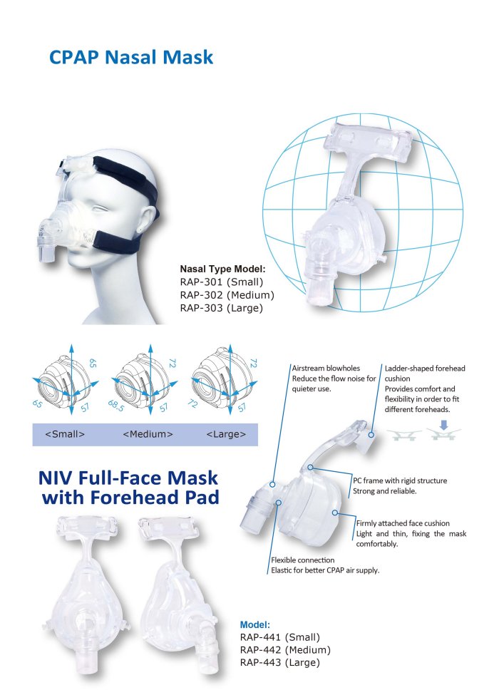 ACARE CPAP full-face mask features patented multi-layered cushion technology providing high compatibility and low noise level when used with CPAP machine.