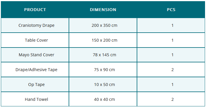 - Fluid Control and Absorption Technology: Addressing fluid challenges is paramount in neurosurgical procedures. Our Drape Pack incorporates advanced fluid control and absorption technology, contributing to a clear and organized surgical field throughout the craniotomy procedure.