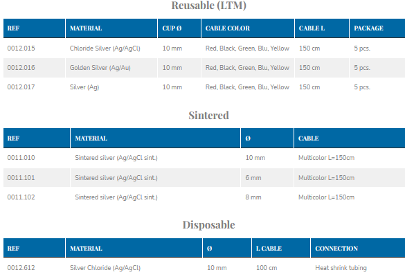 The cup electrodes are used for the recording of electrical brain activity (EEG). The electrodes are placed in contact with the clean skin and applied according to the "10-20 International Standard" with an adhesive paste. The BIONEN electrodes are developed to assure a reliable and high-quality signal. The reusable ones are manufactured with silver electrodes and have a particular molded connection to minimize the risk of damage. The disposable ones have no risk of cross-contamination and do not need any maintenance activity.