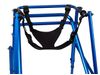 Adjustable sling seat provides weight bearing assistances, stabilizes hip and pelvis and centers user within the walker.
