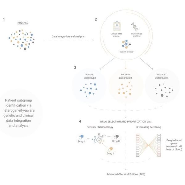 STALICLA’s precision medicine approach begins with ‘endophenotyping’-identifying the nonbehavioral physical and molecular presentations of NDDs and characterizing subgroups of patients with similar disease signatures. DEPI matches these patient subgroups with an NDD-targeted drug (or drug combination) by integrating and analyzing large omics data sets, including genomics, proteomics, pharmacogenomics and clinical data.