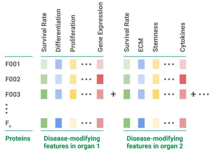 The library that Juvena is curating is a multi-dimensional map of proteins and their diseases-modifying effects across different organs and indications. Combined with deep learning models, this library allows Juvena to identify and rank therapeutic candidates more cost-effectively and much quicker than traditional methods.