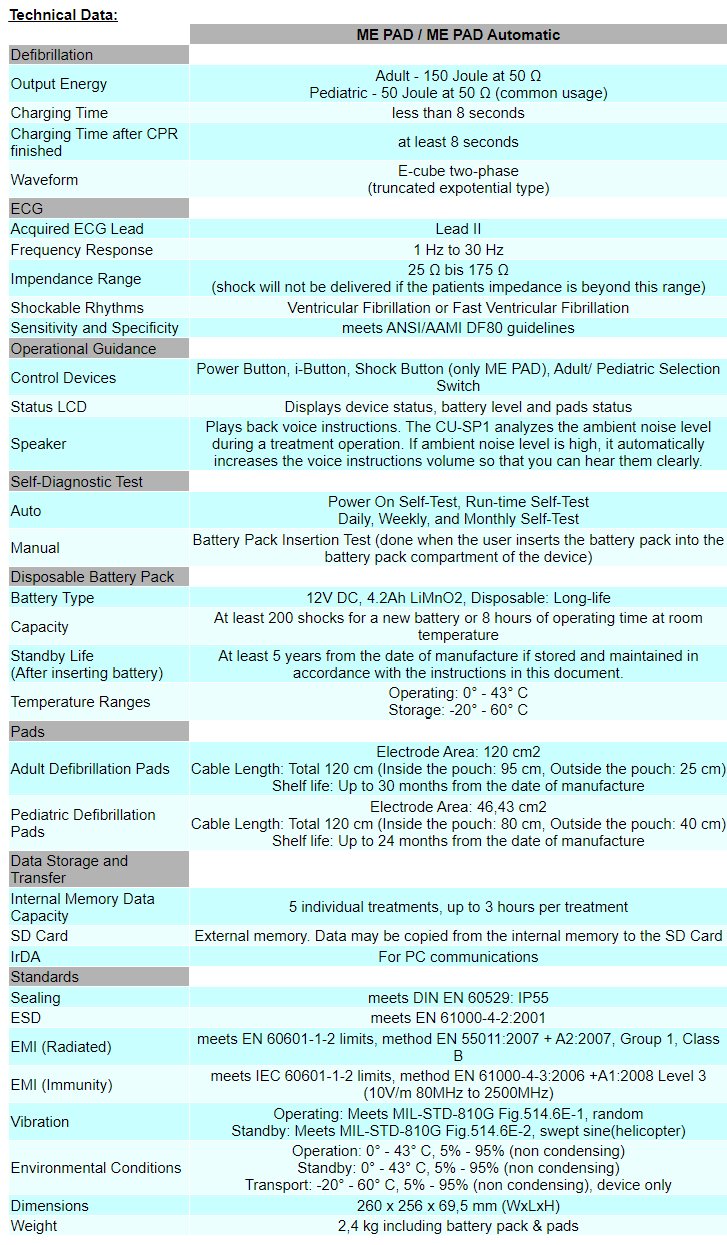 The software of ME PAD is programmed according to the current guidelines of the ERC.