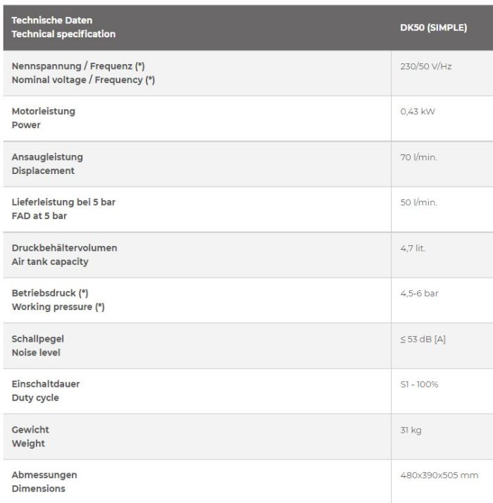 EKOM - Model DK50 (SIMPLE) -Dental Compressor