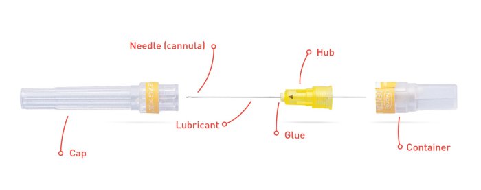 - Ultra-sharp, three-beveled siliconized needle to minimize patient discomfort during injection
