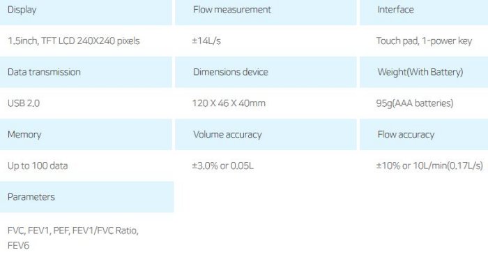 The digital spirometry system combines a digital spirometer with a Windows10. Printable report.