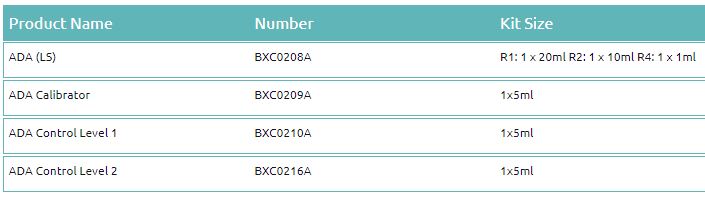 The Fortress Diagnostics Adenosine deaminase (ADA) assay kit is for determination of ADA activity in human serum and plasma samples. In the USA, this is for investigative use only.