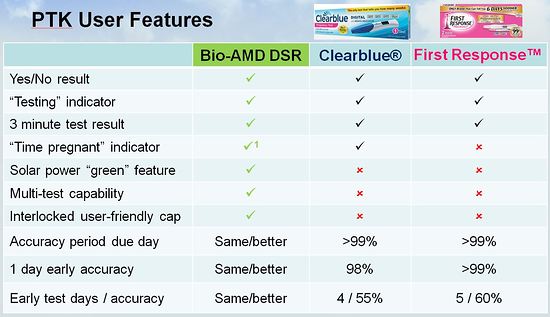The DSR has a wide range of applications. We have focused our commercial efforts initially on a next generation pregnancy test for ‘Over The Counter’ and home use. We believe, as a Pregnancy Test Kit (PTK), that DSR is superior to the market leading digital products: