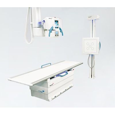 The ddRAura OTC is an advanced and modern direct digital X-Ray system for demanding radiology departments. It includes a manually positioned ceiling suspension with motorized elevation, a floor-mounted fixed height or height adjustable patient table with a 4-way floating table top and manually positioned wall stand (optionally motorized). The concealed cabling and lightweight construction of the ddRAura OTC allow for quiet and precise movements. The motorized elevation of the ceiling suspension allows maintaining SID to the patient table as well as tracking the vertical movements of the wall stand. Optionally, the table detector also follows the horizontal movements of the ceiling suspension increasing positioning speed, accuracy and providing faster workflow.