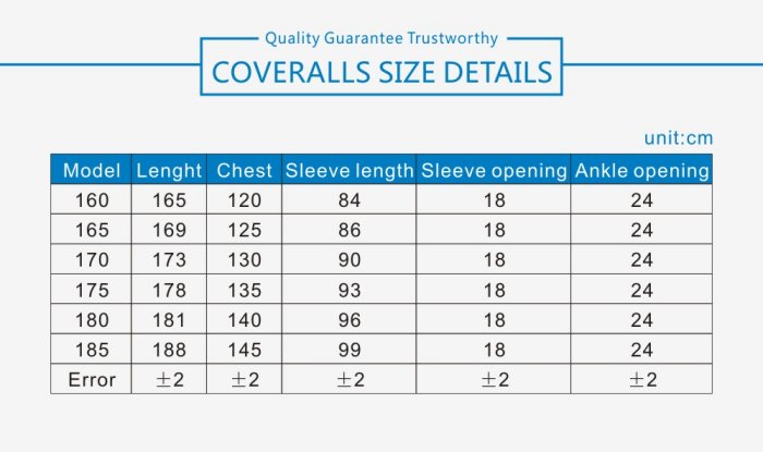 Style: Hooded one-piece protective clothing; zipper type, with elastic bands on the cuffs, trousers and waist, stable sealing performance;