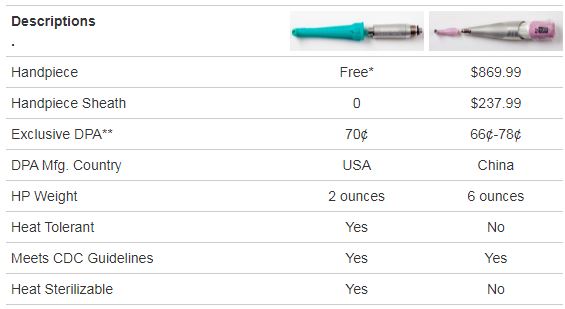 Esa meets CDC guidelines since it eliminates the nose cone, the portion of the handpiece that contacts the mucous membrane and non-intact skin. It’s also heat sterilization tolerant so it’s compliant with state dental practice acts that require heat sterilization between patients.