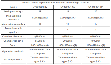 The double-cabin structure omege oxygen chamber, also known as the one- chamber, two-cabins and four-doors oxygen chamber, which divided into two compartments,the treatment cabin and the transition cabin.