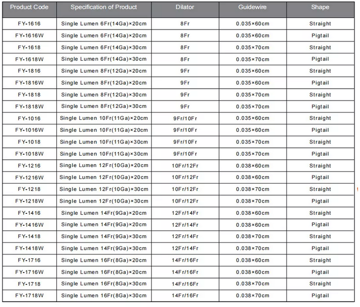 Catheter :Special PU material with excellent biocompatibility. Flexibility make catheter not easy adhere and block, less irritation, kinking resist and its self-soften in body make patient more comfortable. Catheter Tube :The catheter tube is radiopaque under X-ray and graduation marked, so it is easy to master the length of the catheter placement. Catheter Placement :Seldinger technical makes placement safer, less trauma and less infection. J tip guidewire make organs less injury. Catheter Front End :Straight or pigtail shape of the catheter tip are available to choose. Smooth multi side holes design enlarge and ensure the flow smoothly, anti-block and anti-wall stick.