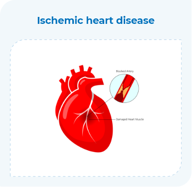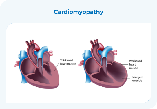 • Ischemic heart disease is involved in the reduction of blood flow due to the accumulation of fatty deposits in the coronary arteries. Cardiomyopathy, including hypertrophic or dilated cardiomyopathy, is a disease of the heart muscle that can occur due to various risk factors. Finally, myocarditis is characterized by the inflammation of the heart muscle, which often occurs due to a viral infection. All of these can ultimately lead to fatal heart failure.