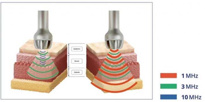 The heat produced by ultrasound waves increase blood flow and providing the fibroblasts which is the most common cells in the skin. It assists the skin to rejuvenate itself and increase collagen production.