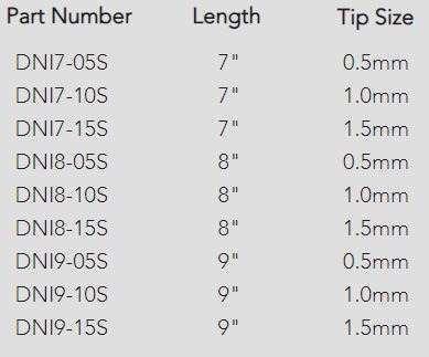 Dual Irrigating Disposable Bipolar Forceps. Part Number: DNI7-05S. Length: 7 Inch. Tip Size: 0.5mm.