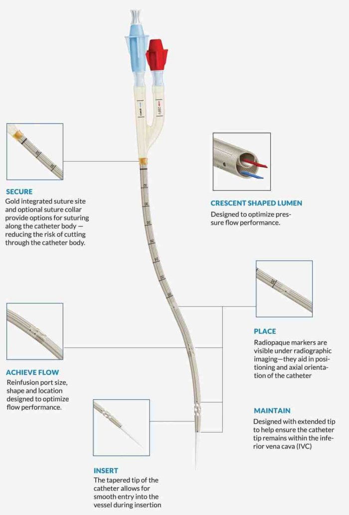 The Crescent Jugular Dual Lumen Catheter is a single use dual lumen catheter, which provides both venous drainage and reinfusion of blood via the jugular vein, that is indicated for use in patients with acute respiratory failure requiring Veno-Venous Extracorporeal Membrane Oxygenation where other available treatment options have failed and continued clinical deterioration is expected or the risk of death is imminent.