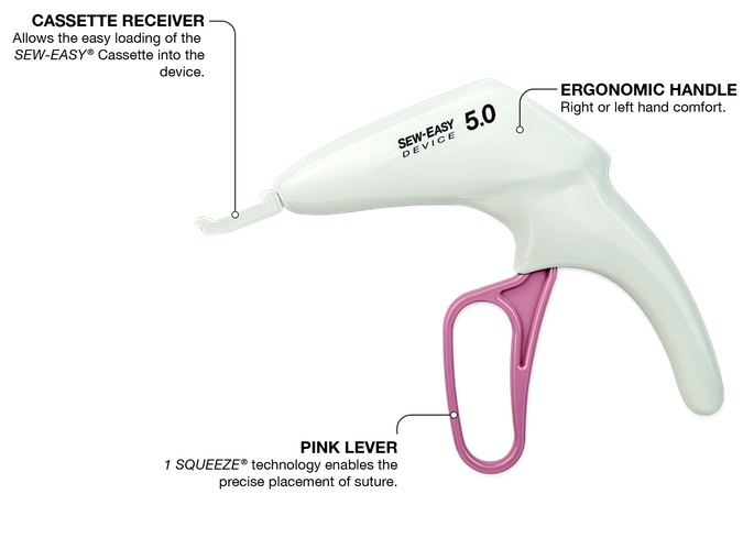 The SEW-EASY® DEVICE is a dual needle device that provides reliable, effective prosthetic suture placement through the sewing cuff with no exposed sharps. SEW-EASY® 3.5 available in 3.5mm suture spacing and SEW-EASY® 5.0 available in 5mm suture spacing.