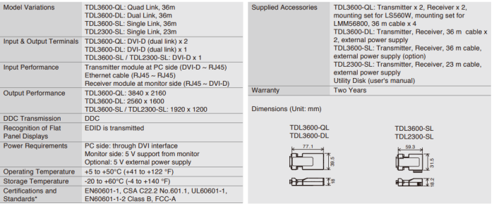 EIZO - Model TDL3600/TDL2300 -DVI Transmission Kits