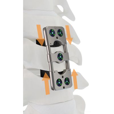 Super elastic nitinol applies a 3 lbs compressive load to the fusion mass.