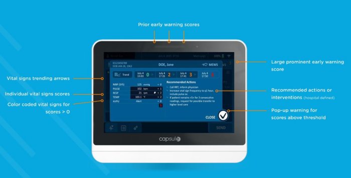 Patients typically show signs of deterioration 8 to 12 hours before a critical event. Now, you can ensure early signs of deterioration are recognized and your care teams know how to respond. Designed to supplement your EMR’s Early Warning Scoring System (EWSS), our system uses hospital-configured scoring systems and interventions to identify patients at risk and guide care teams right at the bedside. This optional add-on to Capsule Vitals Plus or Chart Xpress* is an ideal tool for non-critical care areas.
