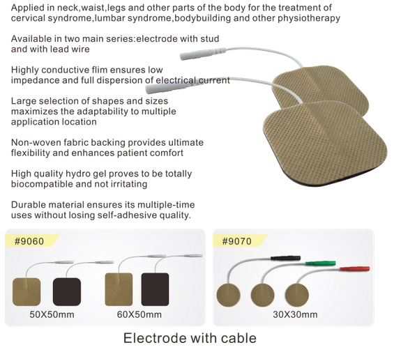 Suitable for the use of TENS/EMS unit and other tow or medium frequency stimulator.