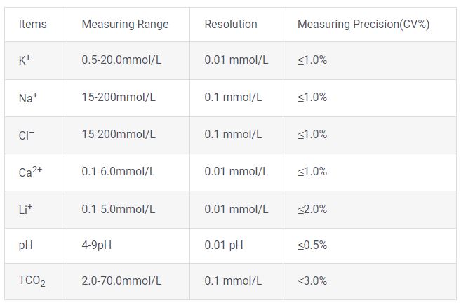 - Item:K、Na、Cl、 iCa、nCa、TCa、pH 、TCO2 、AG