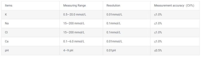 - Item:K、Na、Cl、 iCa、nCa、TCa、pH 、TCO2 、AG