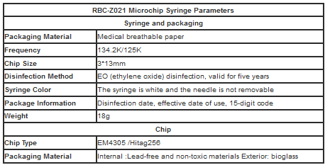 Raybaca - Model RBC-Z021 -Electronic Identification Implantable Rfid Tag Rfid Glass Tag