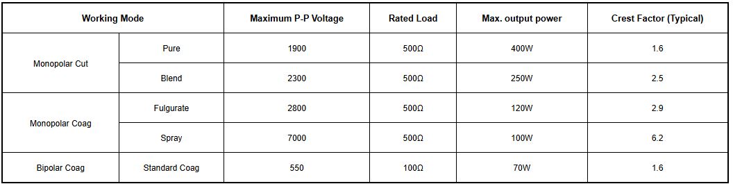 IVT-300B Electrosurgical Device capable of supplying current suitable for cuts, coagulating cuts, coagulation in monopolar mode and coagulation in bipolar mode.