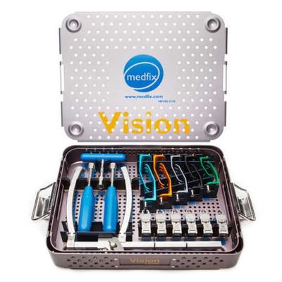Medfix® VISION Elliptical Lumbar Retractor Systems: Anodized aluminum blades provide a higher degree of radiolucency compared to stainless steel or titanium. Color coded blades for easy intra-operative size identification. Elliptical lumbar frame. The curvature of the frame provides a more anatomical exposure compared to traditional box frames. Lighted blades available. Our lighted blades work seamlessly with our light source and light cable. Locking technology assures that the blades are securely connected to the retractor body. All components, including sterilization trays are made in the United States.