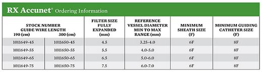 The RX Accunet EPS is indicated for use as a guide wire and embolic protection system to contain and remove embolic material (thrombus / debris) while performing angioplasty and stenting procedures in carotid arteries. The diameter of the artery at the site of filter basket placement should be between 3.25 mm and 7.0 mm.