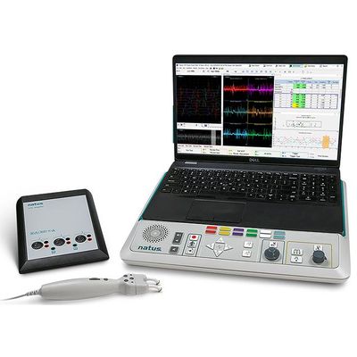 - Contains built-in control panel with an integrated speaker, an electrical stimulator probe, an amplifier, laptop computer and system software with connectors for optional devices