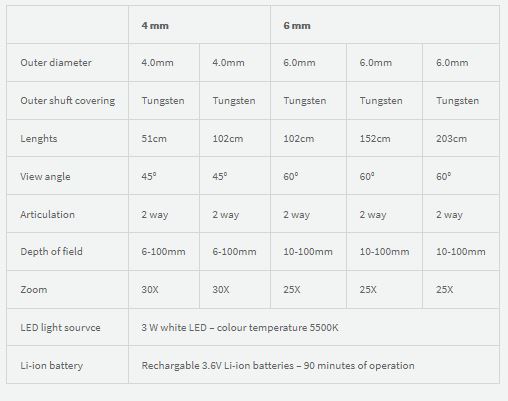 - Set: Fibroscope, Li-ion battery, charger, user manual and cary case.