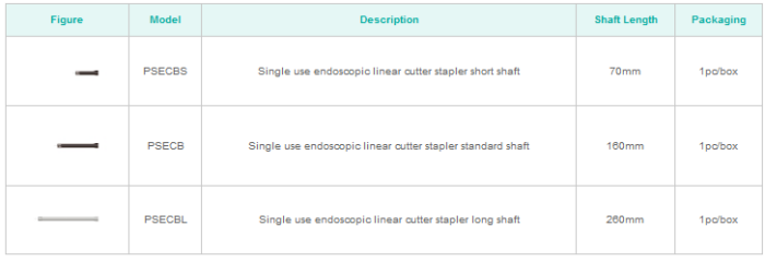 - Three different length instrument shaft of the endo linear cutter stapler can adapt to different surgeries.