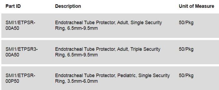The Southmedic Endotracheal Tube Protector, or Bite Block, is designed to fit multiple sizes of endotracheal tubes (ET Tubes). An ET Tube is a catheter inserted into the trachea through the mouth or nose used to maintain an open air passage to deliver oxygen or permit suctioning of mucus or to prevent aspiration of the stomach contents. Southmedic Bite Block is made from a non PVC environmentally friendly material that is soft enough to protect teeth and yet extremely durable to protect the ET Tube. Attached to the Bite Block is a slip-security ring that fits over the standard ET Tube 15 mm adaptor. This, along with an adjustable tie-wrap ensures the Bite Block stays in place.