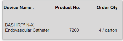 * Bashir™ Endovascular Catheters are for use only by trained physicians in strict accordance with the FDA cleared IFU. Only the BASHIR™ N-X may be used in the pulmonary artery.